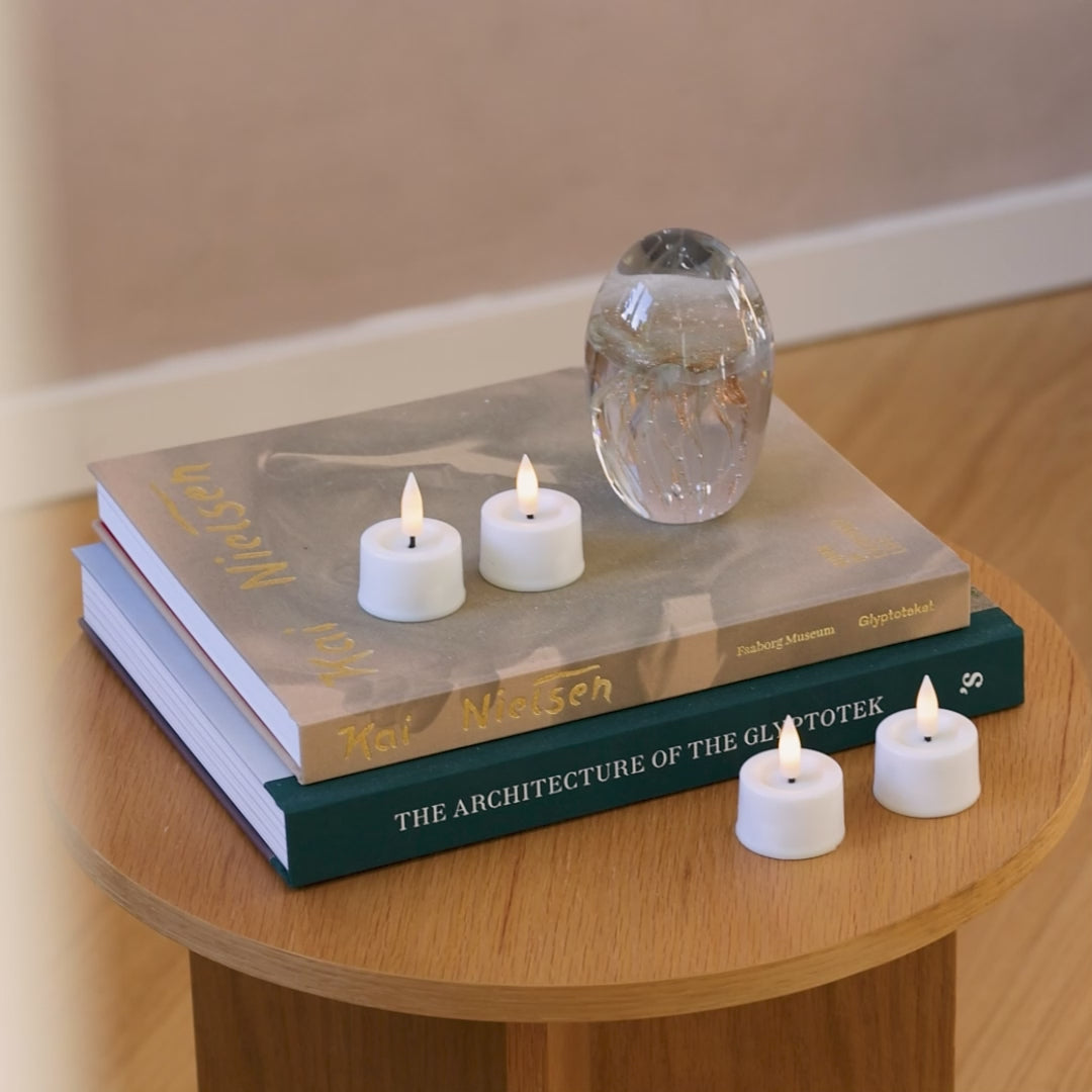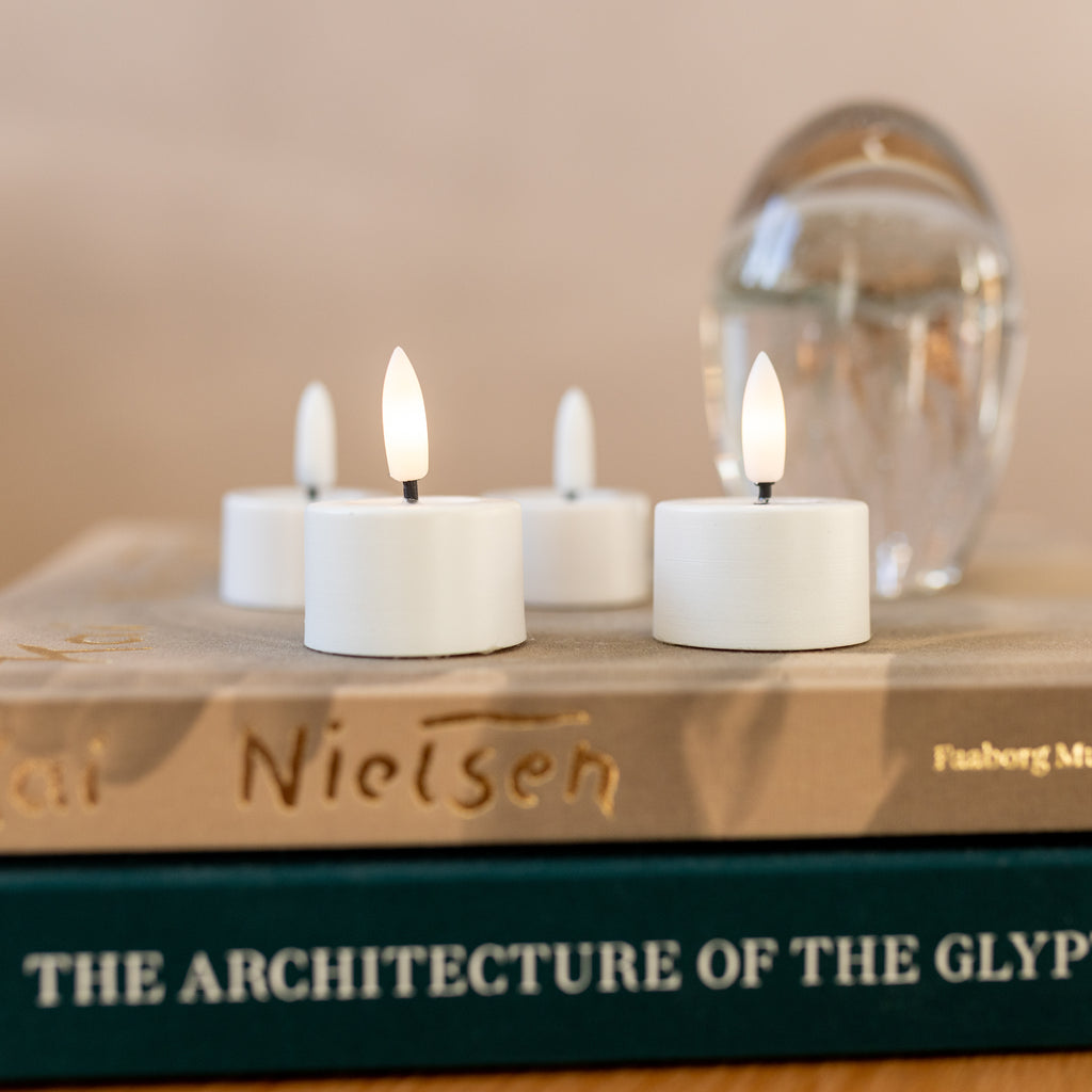De witte Luca LED theelichten zijn prachtige, levensechte kaarsen gemaakt van echt kaarsvet die een gezellig, warm wit licht bieden.