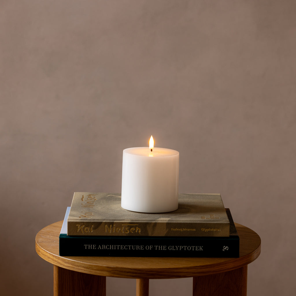 De witte Rika LED-pilaarkaarsen stellen je in staat om gezellige momenten te creëren zonder je zorgen te hoeven maken over roet, schadelijke deeltjes of het risico op brand.